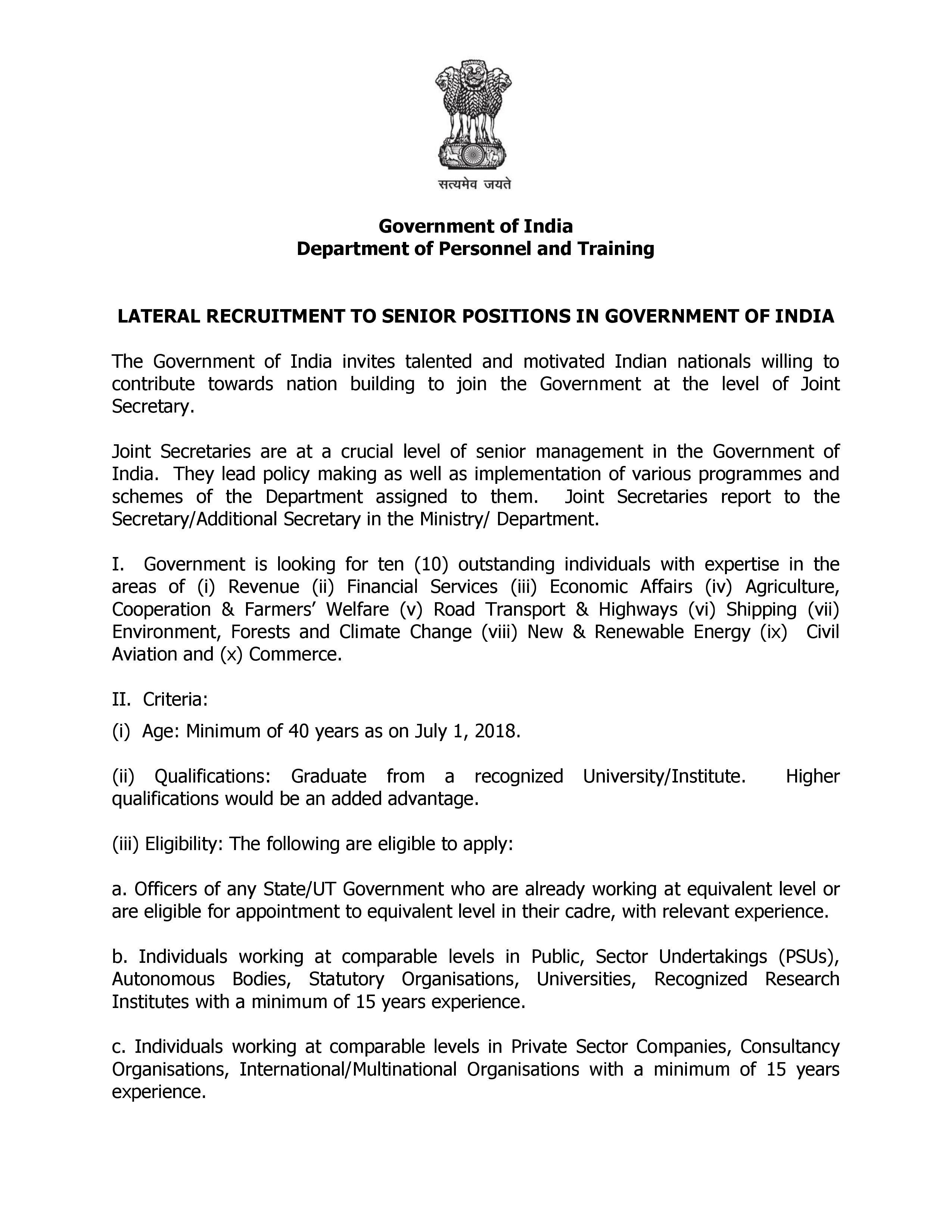 One of my civil service colleagues coined the above phrase on our WhatsApp group site. The context was the advertisement by the Department of Personnel and Training, Government of India inviting applications for contractual appointment as Joint Secretary (JS) in the Government of India through lateral entry. Just when the Indian bureaucracy thought it was done and dusted with the debate over the service-state allocation post-entry into the civil service rather than pre-entry, the union government set off another Diwali rocket under its nether regions. Ten JS posts in coveted Ministries ranging from Revenue and Economic Affairs to Road Transport and Commerce are up for grabs.